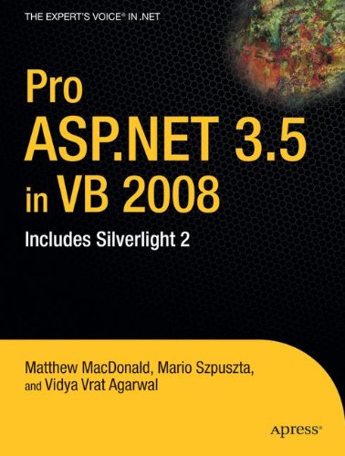 Pro ASP.NET 3.5 in VB 2008: Includes Silverlight 2 (Expert's Voice in .NET) by Mario Szpuszta, Matthew MacDonald, Vidya Vrat Agarwal accessibility Books LIbrary as well as its powerful features, including thousands and thousands of title from favorite author, along with the capability to read or download hundreds of boos on your pc or smartphone in minutes.